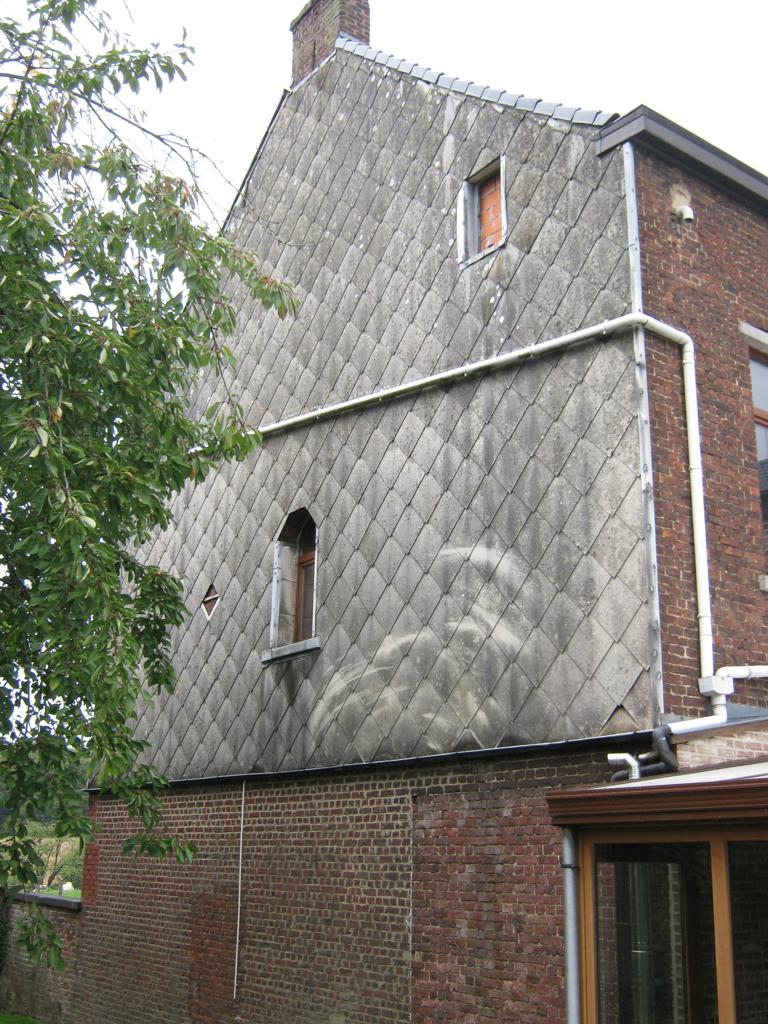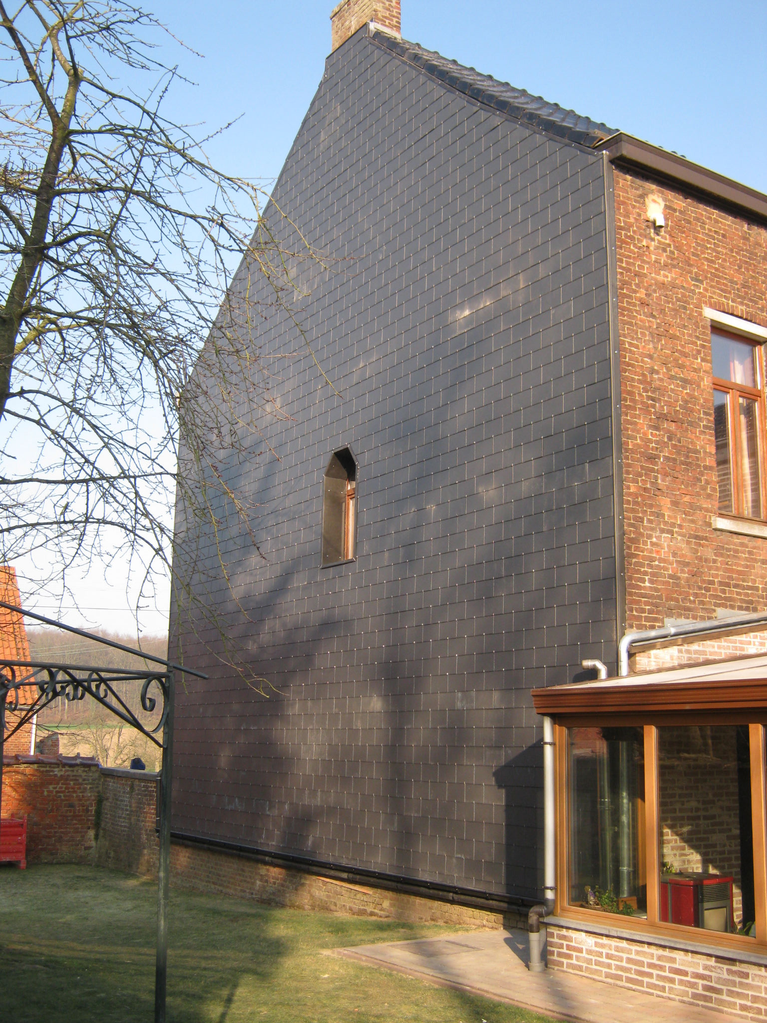 Revêtement bardage en ardoise fini.