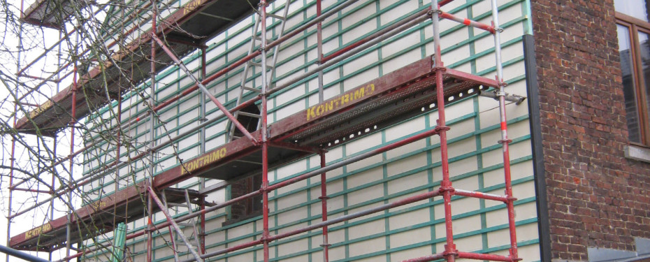 Echaffaudage et pose de la structure portante isolée avant la pose des ardoises.